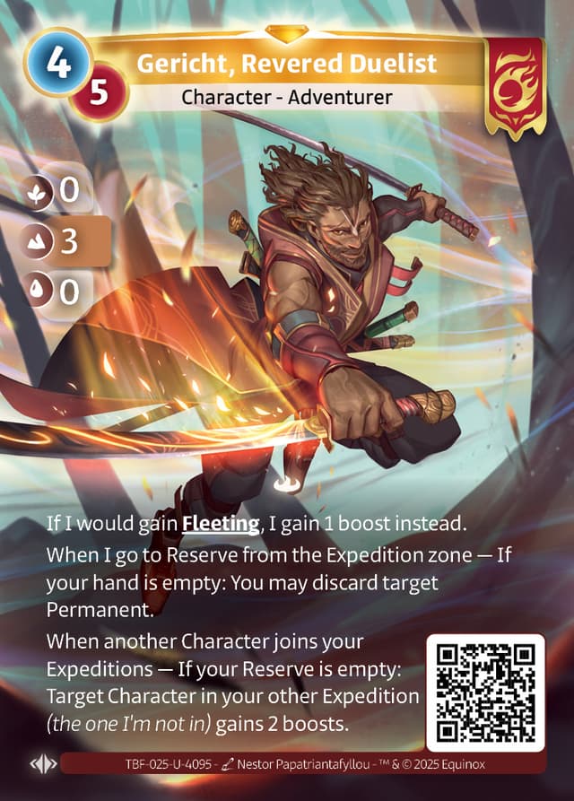 When another Character joins your Expeditions — If your Reserve is empty: Target Character in your other Expedition (the one I'm not in) gains 2 boosts.