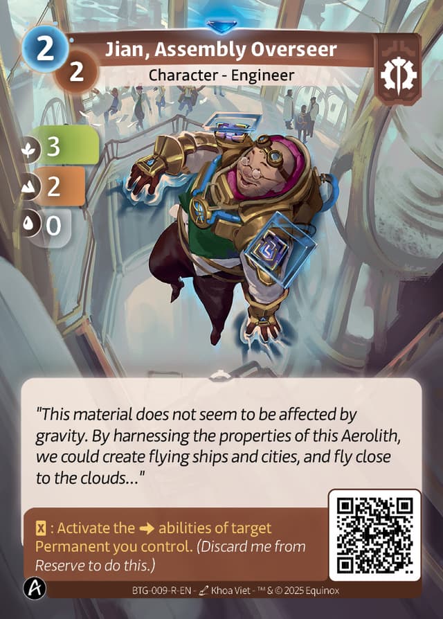 Jian Lam places a hand on the Aerolith core, tapping its surface while he talks to us about its properties. I listen carefully to the Eidolon. Like Kelon, Aerolith is a material that emerged with the Confluence. The Tumult Nomads had already mentioned it during their travels: floating ruins, rocks suspended in the air as if by magic… It wasn't just a simple freak of nature, but a new element that could be exploited. That's what Jian Lam had done over 300 years ago. He had designed levitating barges and platforms, and lots of other unconventional and visionary inventions… In a way, it's even thanks to him that the capital looks the way it does today, with lakeside areas that float above the water without support columns.