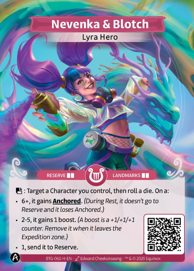 • 2-5, it gains 1 boost.(A boost is a +1/+1/+1 counter. Remove it when it leaves the Expedition zone.)