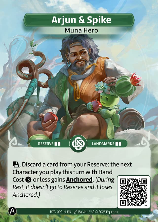 , Discard a card from your Reserve: the next Character you play this turn with Hand Cost or less gains Anchored.(During Rest, it doesn't go to Reserve and it loses Anchored.)