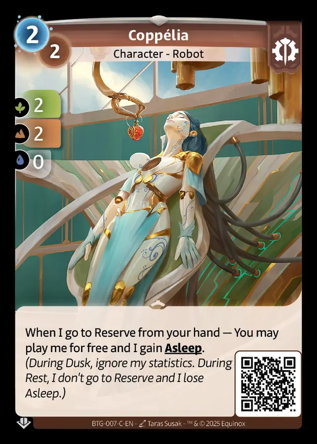 When I go to Reserve from your hand — You may play me for free and I gain Asleep.(During Dusk, ignore my statistics. During Rest, I don't go to Reserve and I lose Asleep.)