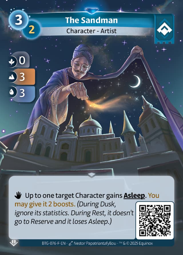 The Eidolon appears in the dorm in a cloud of golden dust. Outside, night has fallen, and I can already hear the sounds of laughter and dancing. As I start to tell my tale, ghostly figures appear, made from sand and half-formed dreams. I'm the storyteller and narrator, while the Sandman is the director and production designer. A pinch of silica makes palaces appear, including the Asterion, which we're now drifting towards on the path of exile. A dash of dreams brings forth cathedrals of glass and greenery, fields of spears and metal. The wide, fascinated eyes of the little ones gradually begin to droop. As the grains turn into a battlefield, the kids also fight with all their strength to stay awake. But I can already see the first ones starting to fall, their eyelids drifting shut as they lose their battle with the oncoming wave of sleep.