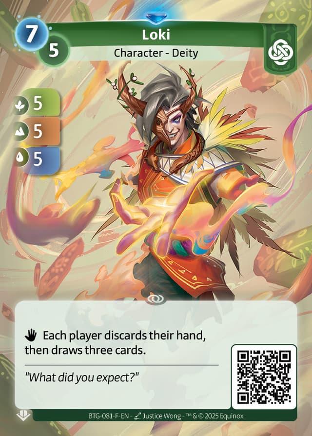 Loki is the son of Fárbauti (a jötunn) and Laufey (a goddess from the Æsir family) and is accepted into the Nordic pantheon by Odin. As a god able to shapeshift at will and conjure illusions, he uses his talents to play tricks and sow discord. He is malicious and impulsive and doesn't care about the consequences of his actions, but his tricks almost always end up backfiring on him. Even though his many misdeeds cause problems, they do sometimes benefit his peers. For example, that's how Thor inherited his famous hammer, Mjöllnir.