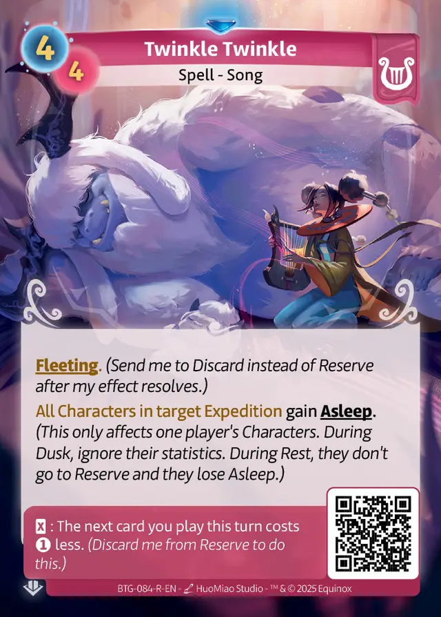 gain Asleep.(This only affects one player's Characters. During Dusk, ignore their statistics. During Rest, they don't go to Reserve and they lose Asleep.)Altered Cards