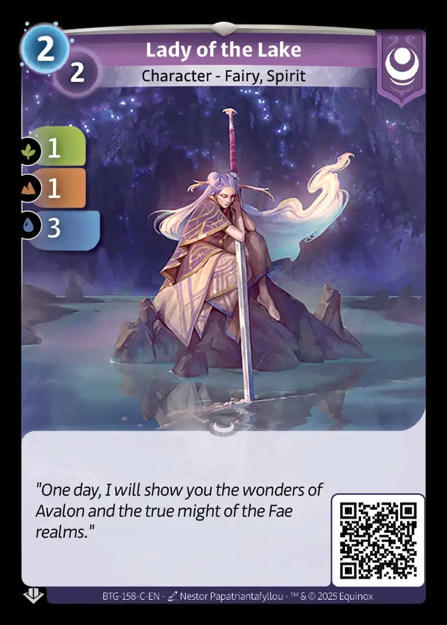 I open my mouth and let Senka burst out of me in thick mauve plumes. My nighthawk spreads its wings while its alabaster mask solidifies to cover its head. I feel the Mana flowing through me like pure spring water, and I immediately channel it into the Effigy I have placed at my feet. The Megalith is shaking in front of me. The ground trembles, and the Tumult oozes from the floating crystal. I need to send it back to its age-long slumber in a hurry. And for that, I call on one of its guardians. The statuette of Nimue shatters, and I feel her presence burst forth from the microscopic breach I've opened to the Empyrean. The Lady of the Lake speaks into the world, holding in her hand Excalibur, the legendary sword of the sleeping king. The Eidolon turns to me, then to the meteor of Aether.