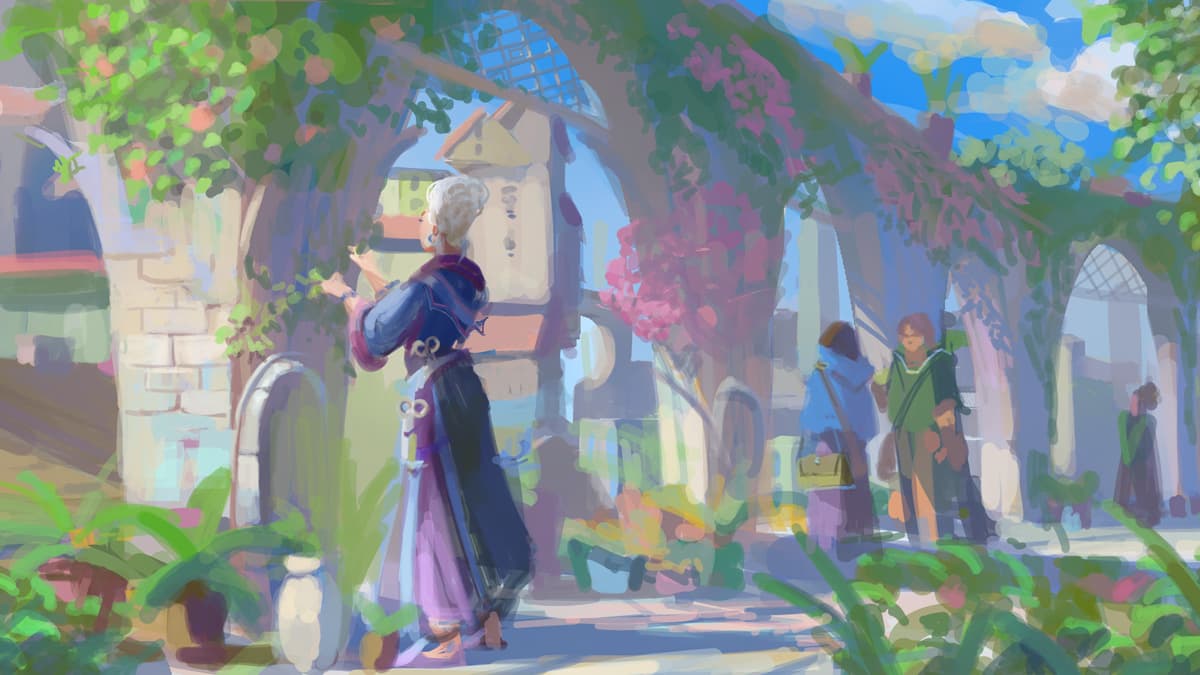Arkaster is a city of winding alleys and narrow lanes, connecting the main thoroughfares and avenues of the city. But the capital also boasts idyllic gardens, majestic parks, and sumptuous squares, some very confidential, and others simply monumental. Among all these sites, mention must be made of the Plaza Stellaria (21), which before the opening of the Kuningasplatz (22) to the public represented the main square of the city. Even if it is now much less fresuented, the plaza is still splendid: from Concord Arch, the monument celebrating the alliance between humans and Eidolons that stands at its center, to the ancient city walls that are still visible there, or the Belltower of the Elysium, with its Great Clock... many scenes of Arkaster's history played out here when the First City was not as extensive as it is now. Vasanti Park (23), shaped by Alteration, testifies to the whimsical spirit of its creator. The groves and bushes, as well as the way plants and flowers grow and bloom, have been greatly modified by the Alterer, causing them to take on improbable shapes and colors. After several centuries, many strollers still come to see the fiery magnolias bloom there, each bud releasing a soft melody when it finally begins to open. And there is no shortage of other points of interest in Arkaster: from Clover Court (24) to Sundial Square (25), through the Pilgrim’s Promenade (26), the Tamrat Quadrant (27), onto the Aroro Lighthouse (32), visiting the metropolis is a once-in-a-lifetime journey, so full it is of secrets.