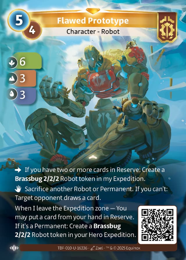 When I leave the Expedition zone — You may put a card from your hand in Reserve. If it's a Permanent: Create a Brassbug 2/2/2 Robot token in your Hero Expedition.