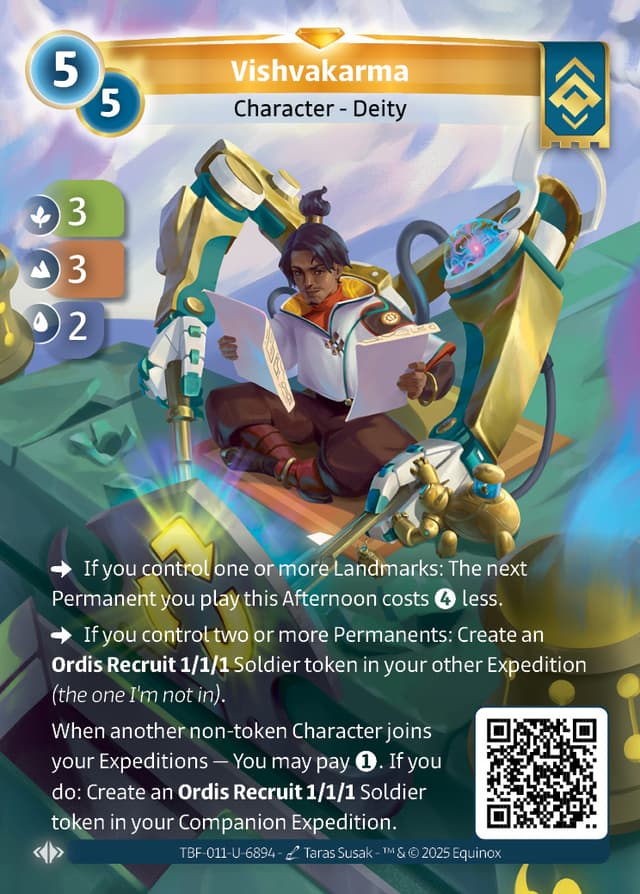 If you control two or more Permanents: Create an Ordis Recruit 1/1/1 Soldier token in your other Expedition (the one I'm not in).
