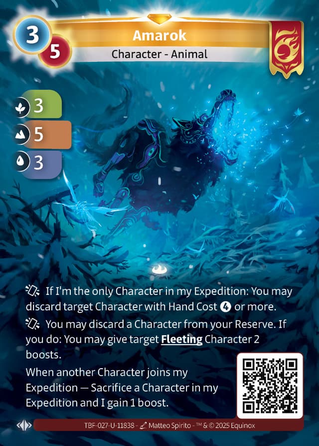 When another Character joins my Expedition — Sacrifice a Character in my Expedition and I gain 1 boost.