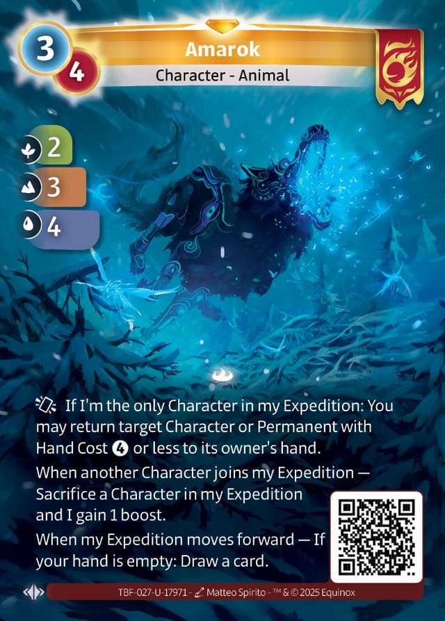 When another Character joins my Expedition — Sacrifice a Character in my Expedition and I gain 1 boost.