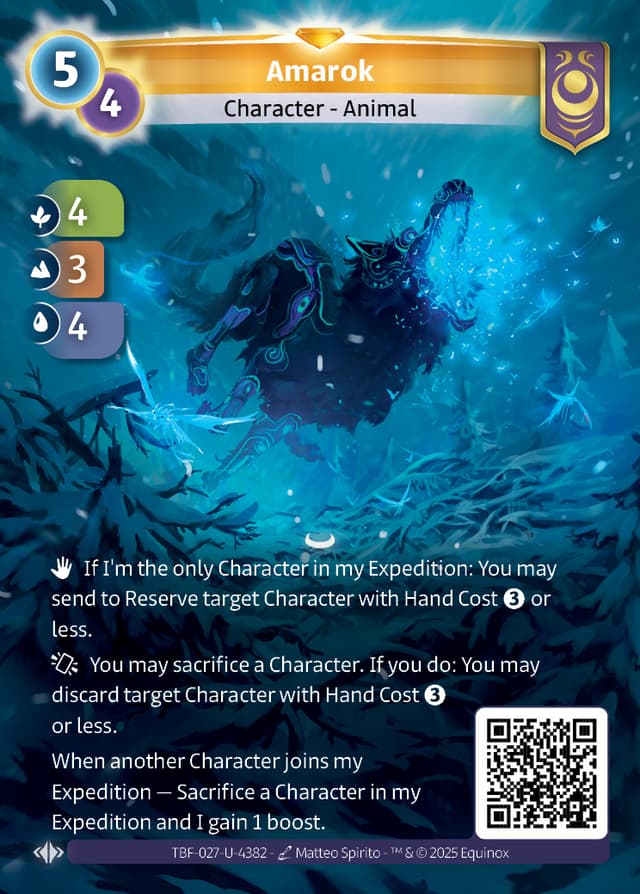When another Character joins my Expedition — Sacrifice a Character in my Expedition and I gain 1 boost.