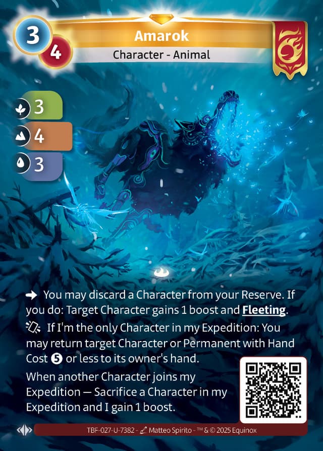 When another Character joins my Expedition — Sacrifice a Character in my Expedition and I gain 1 boost.