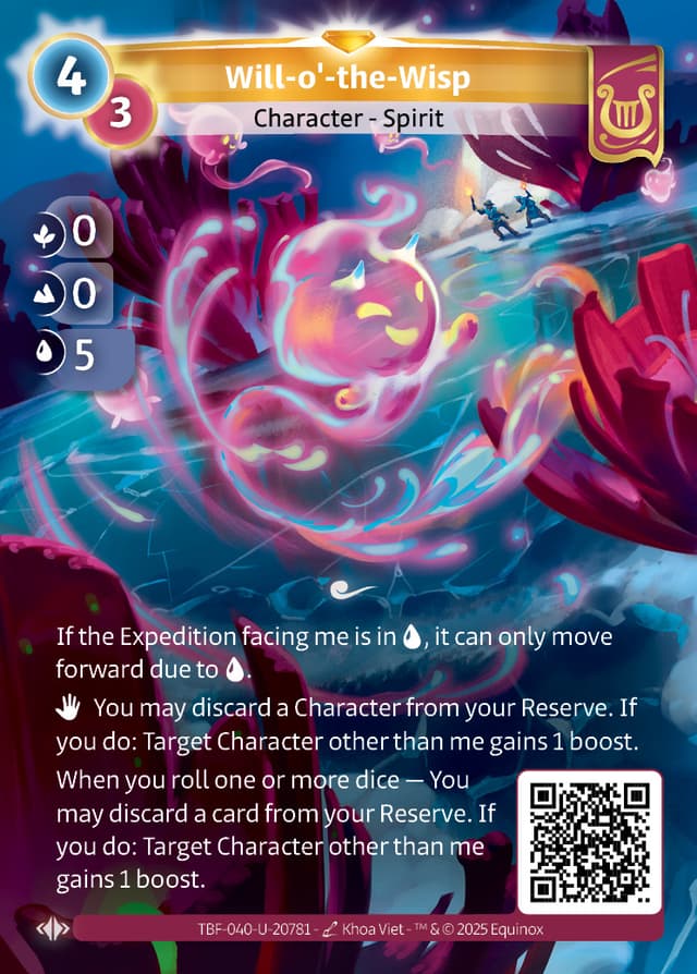 When you roll one or more dice — You may discard a card from your Reserve. If you do: Target Character other than me gains 1 boost.