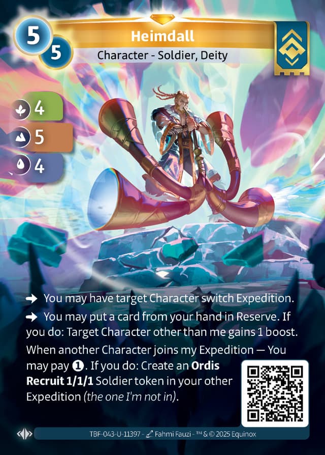 When another Character joins my Expedition — You may pay . If you do: Create an Ordis Recruit 1/1/1 Soldier token in your other Expedition (the one I'm not in).