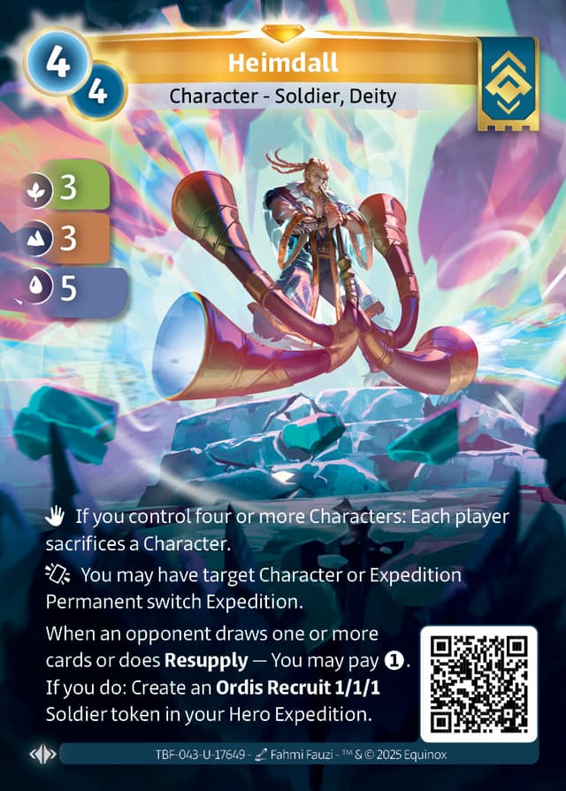 When an opponent draws one or more cards or does Resupply — You may pay . If you do: Create an Ordis Recruit 1/1/1 Soldier token in your Hero Expedition.