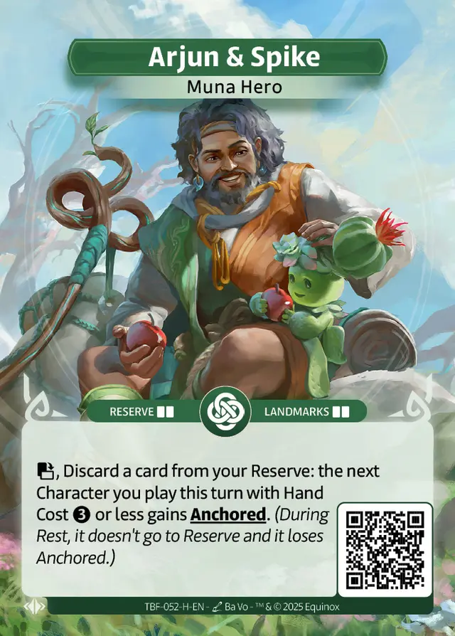, Discard a card from your Reserve: the next Character you play this turn with Hand Cost or less gains Anchored.(During Rest, it doesn't go to Reserve and it loses Anchored.)