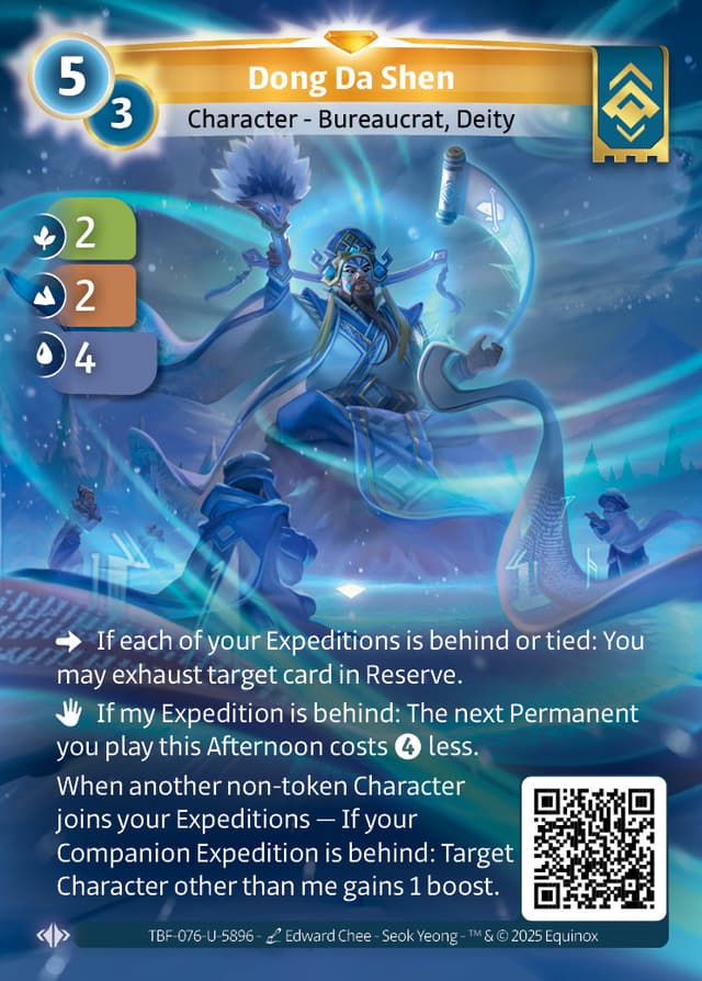 If my Expedition is behind: Pay less for the next Permanent you play this Afternoon.