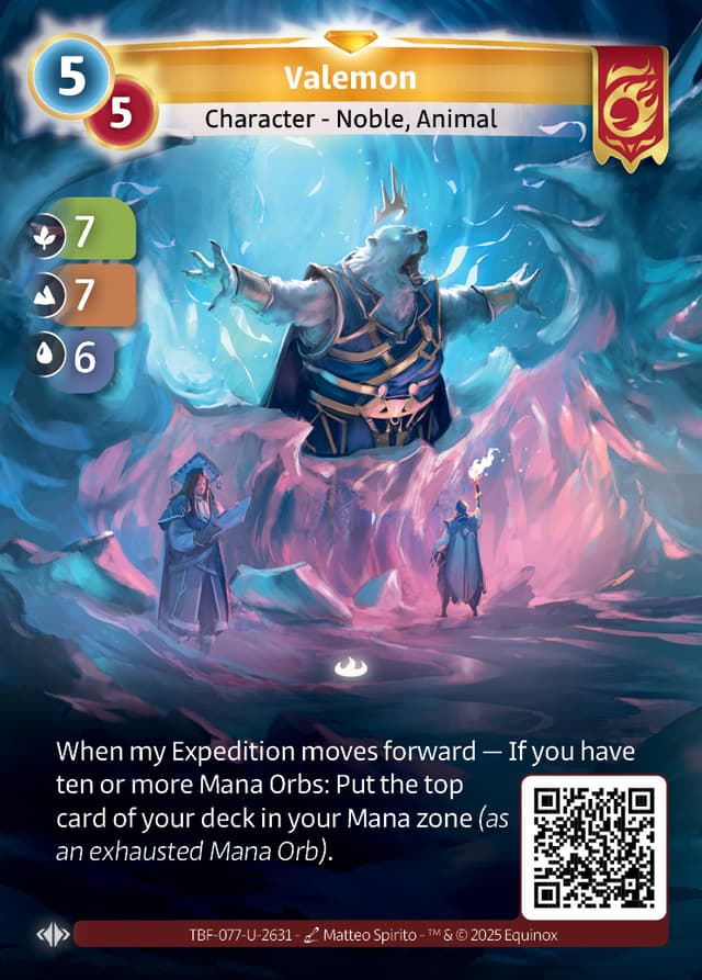 When my Expedition moves forward — If you have ten or more Mana Orbs: Put the top card of your deck in your Mana zone (as an exhausted Mana Orb).