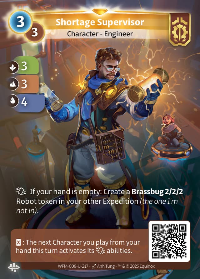 If your hand is empty: Create a Brassbug 2/2/2 Robot token in your other Expedition (the one I'm not in).