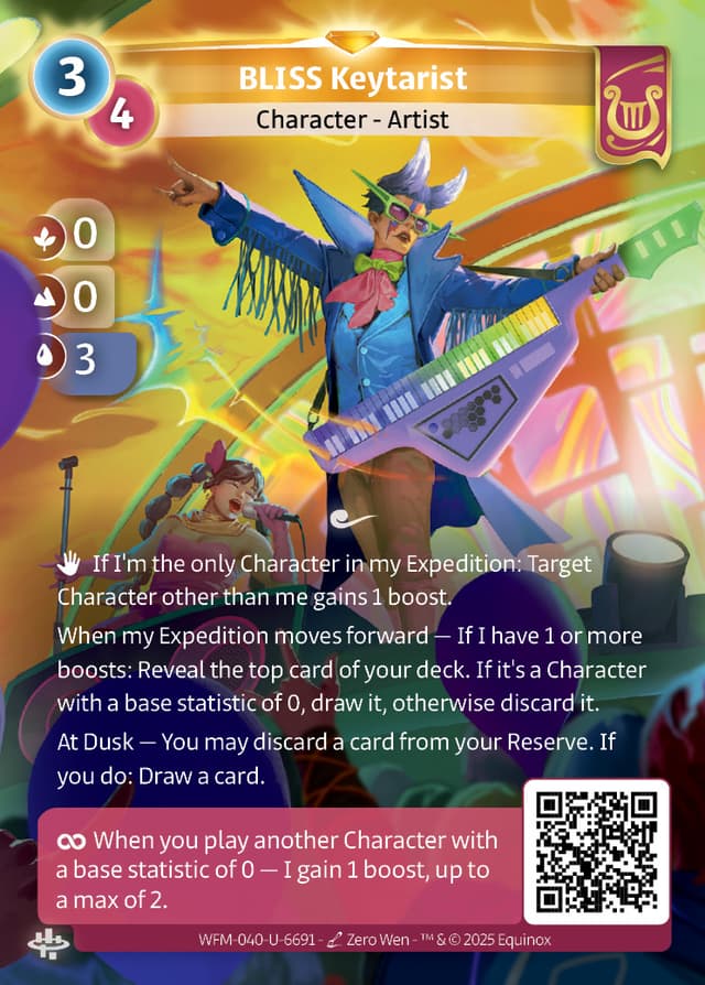 When my Expedition moves forward — If I have 1 or more boosts: Reveal the top card of your deck. If it's a Character with a base statistic of 0, draw it, otherwise discard it.