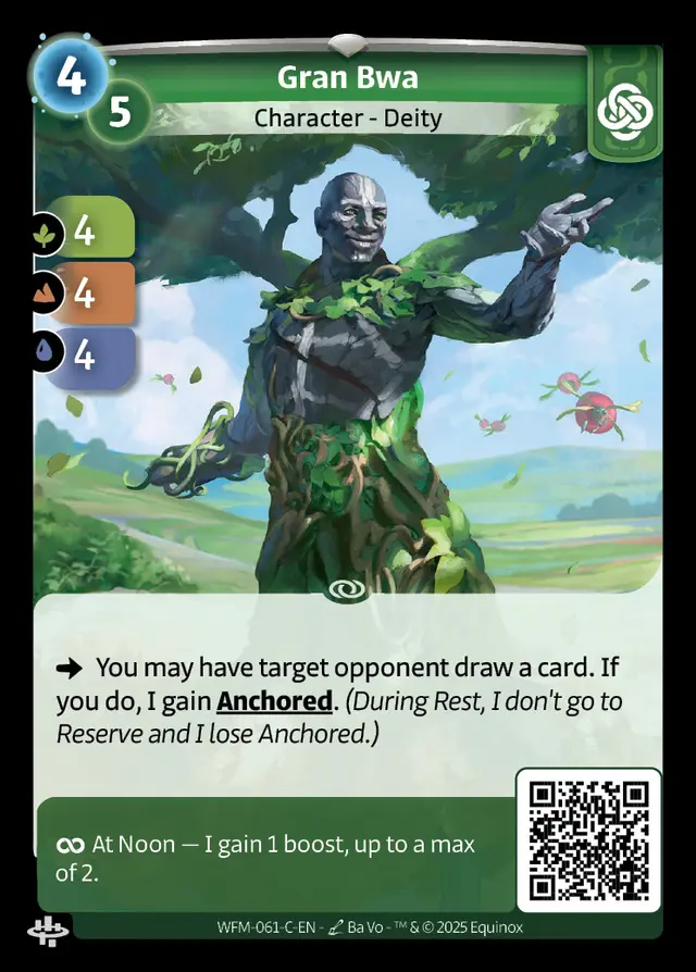 You may target an opponent, they draw a card. If you do, I gain Anchored.(During Rest, I don't go to Reserve and I lose Anchored.)