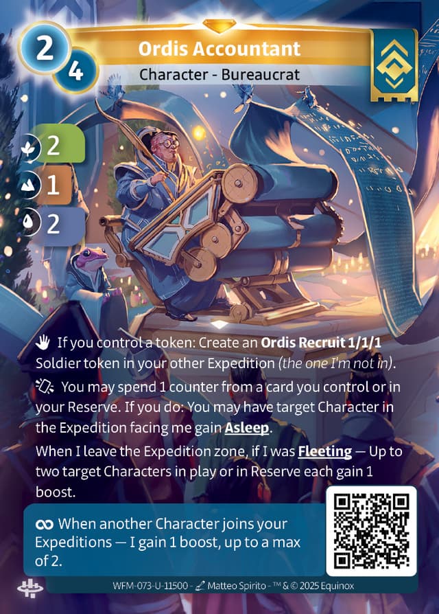 If you control a token: Create an Ordis Recruit 1/1/1 Soldier token in your other Expedition (the one I'm not in).