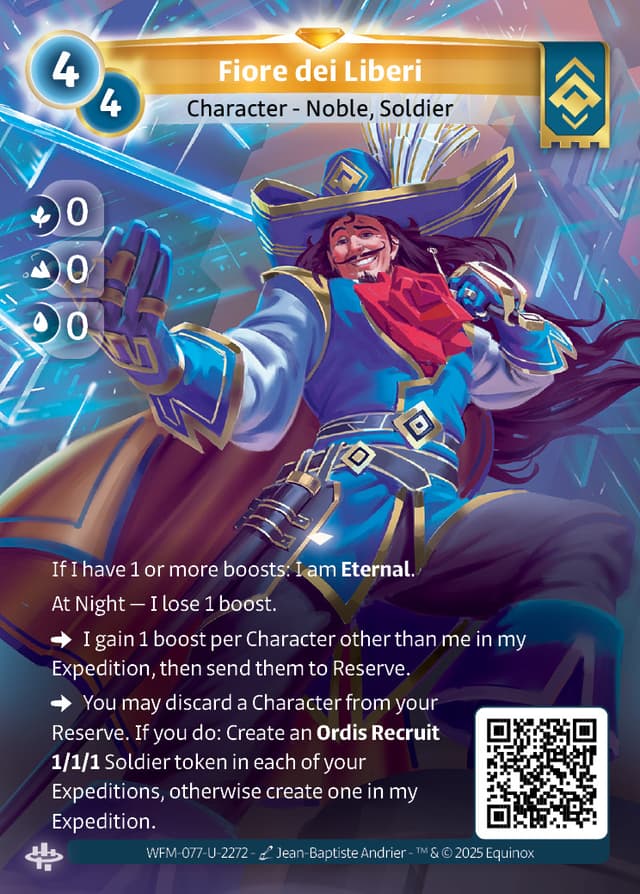 You may discard a Character from your Reserve. If you do: Create an Ordis Recruit 1/1/1 Soldier token in each of your Expeditions, otherwise create one in mine.