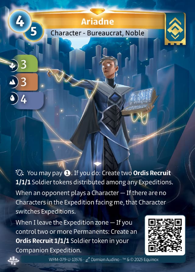 When I leave the Expedition zone — If you control two or more Permanents: Create an Ordis Recruit 1/1/1 Soldier token in your Companion Expedition.