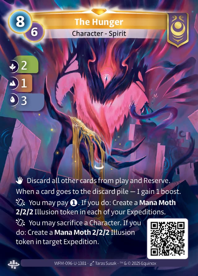 You may sacrifice a Character. If you do: Create a Mana Moth 2/2/2 Illusion token in target Expedition.