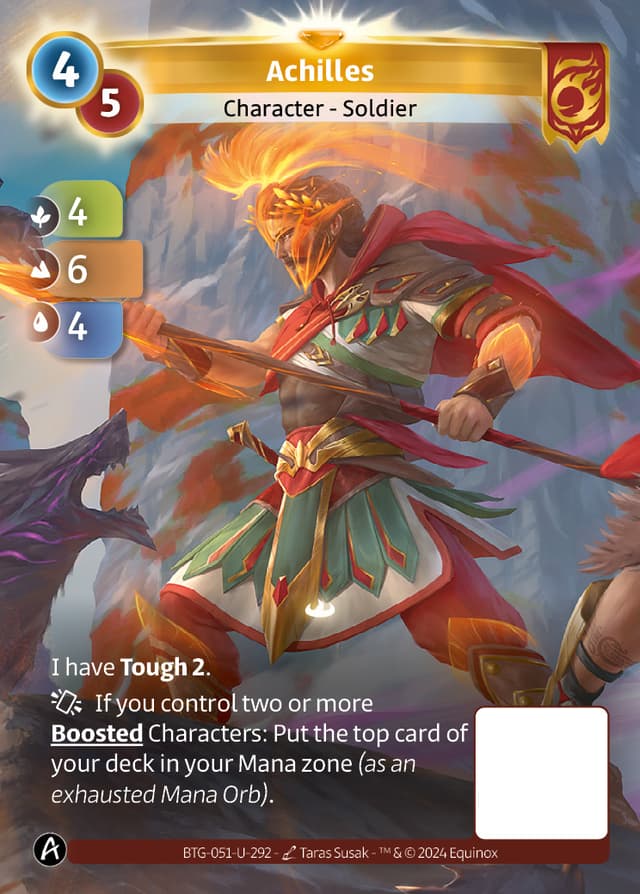 If you control two or more Boosted Characters: Put the top card of your deck in your Mana zone (as an exhausted Mana Orb).