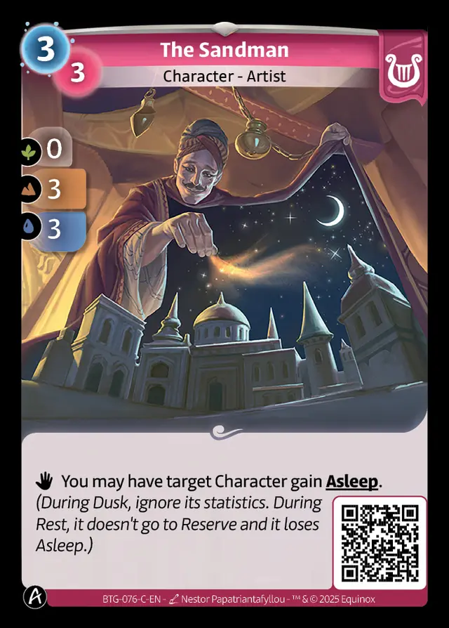 You may have target Character gain Asleep.(During Dusk, ignore its statistics. During Rest, it doesn't go to Reserve and it loses Asleep.)