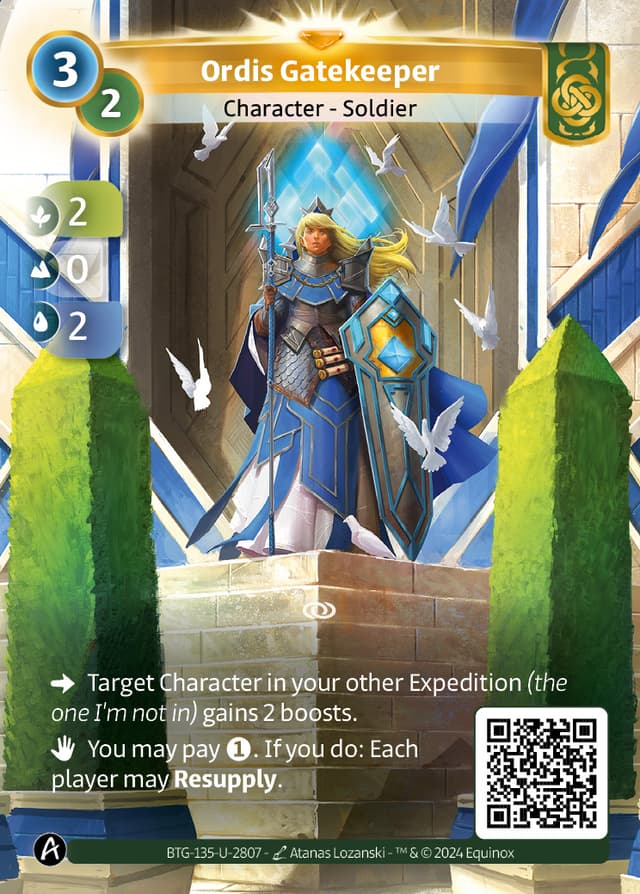 Target Character in your other Expedition (the one I'm not in) gains 2 boosts.