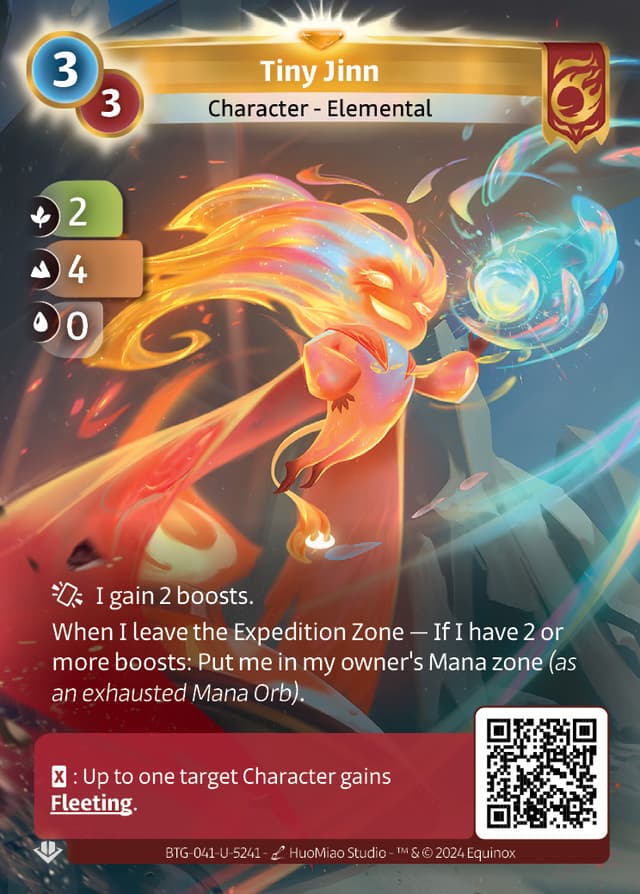 When I leave the Expedition zone — If I have 2 or more boosts: Put me in my owner's Mana zone (as an exhausted Mana Orb).