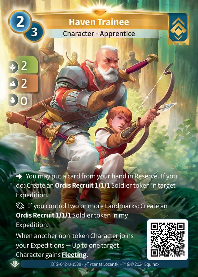 You may put a card from your hand in Reserve. If you do: Create an Ordis Recruit 1/1/1 Soldier token in target Expedition.