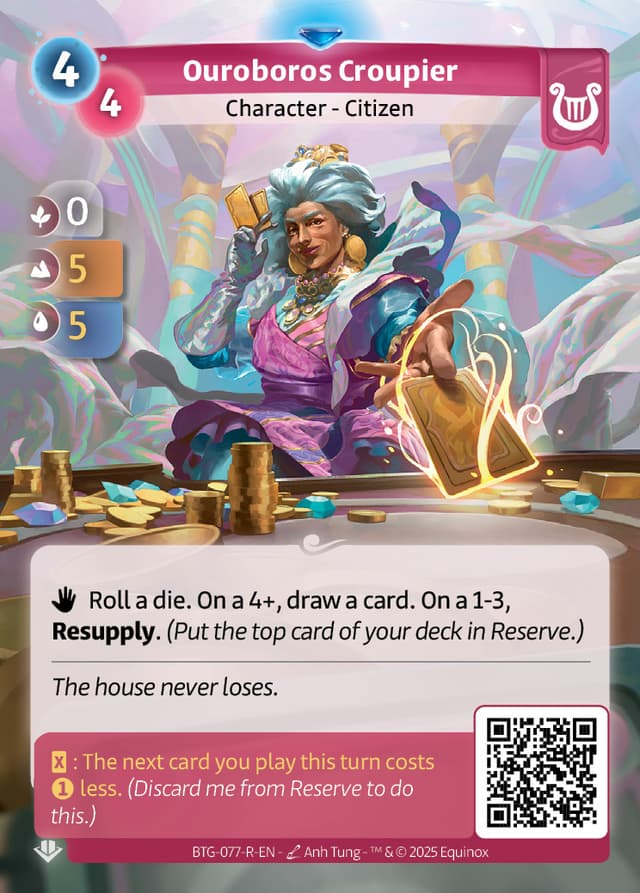 Roll a die. On a 4+, draw a card. On a 1-3, Resupply.(Put the top card of your deck in Reserve.)