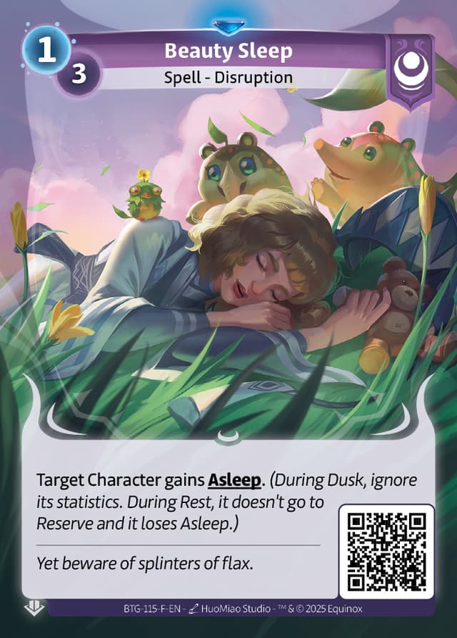 Target Character gains Asleep.(During Dusk, ignore its statistics. During Rest, it doesn't go to Reserve and it loses Asleep.)