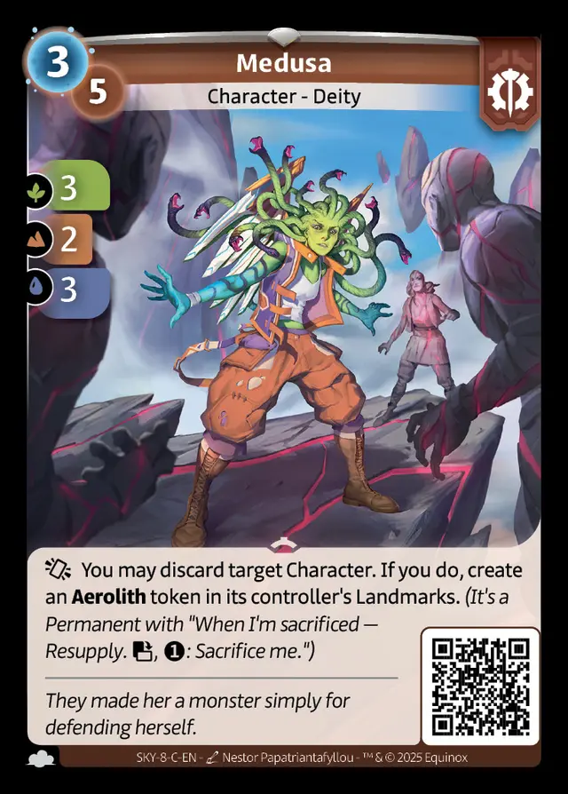 You may discard target Character. If you do, create an Aerolith token in its controller's Landmarks.(It's a Permanent with "When I'm sacrificed — Resupply. , : Sacrifice me.")
