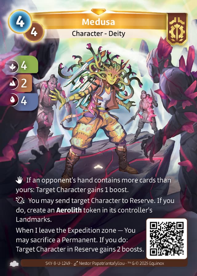 When I leave the Expedition zone — You may sacrifice a Permanent. If you do: Target Character in Reserve gains 2 boosts.