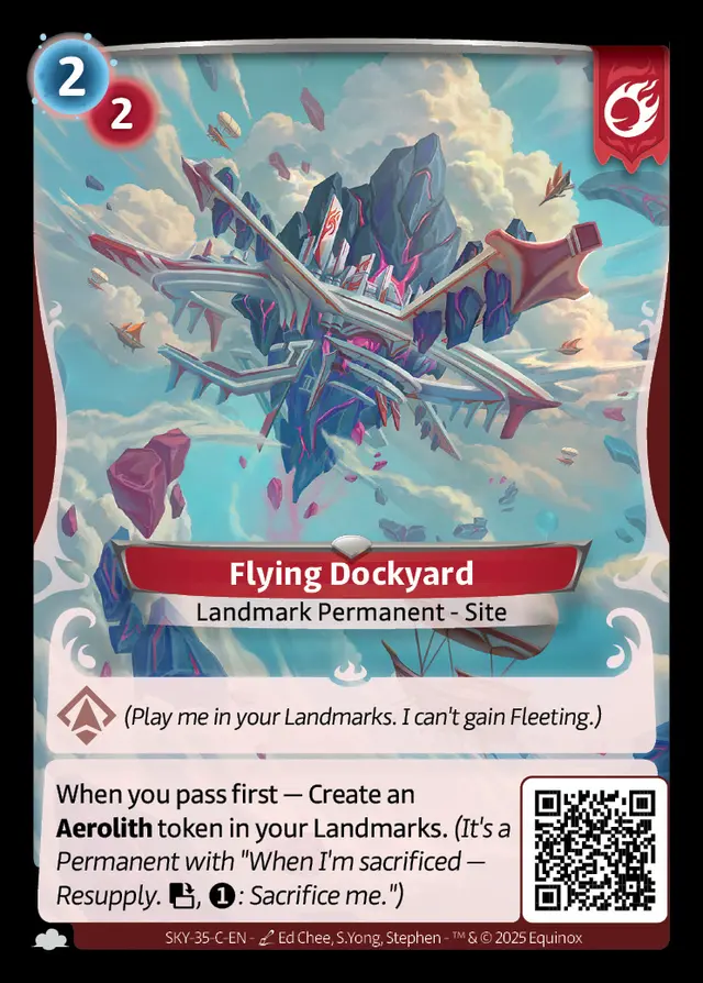 When you pass first — Create an Aerolith token in your Landmarks.(It's a Permanent with "When I'm sacrificed — Resupply. , : Sacrifice me.")