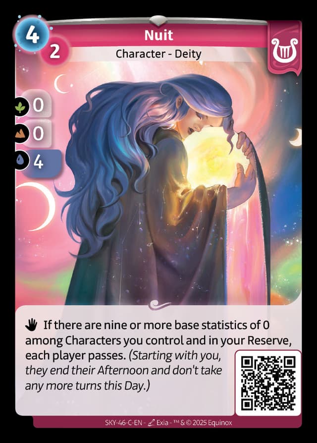 If there are nine or more base statistics of 0 among Characters you control and in your Reserve, each player passes.(Starting with you, they end their Afternoon and don't take any more turns this Day.)