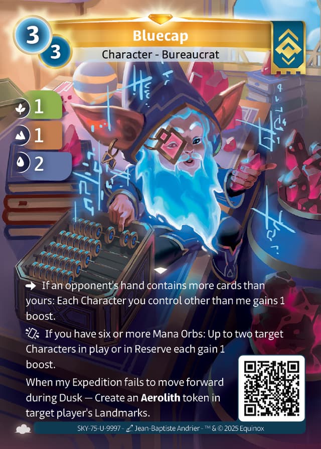If you have six or more Mana Orbs: Up to two target Characters in play or in Reserve each gain 1 boost.