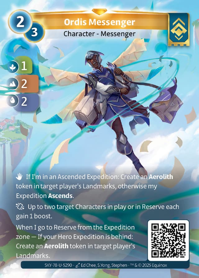 When I go to Reserve from the Expedition zone — If your Hero Expedition is behind: Create an Aerolith token in target player's Landmarks.