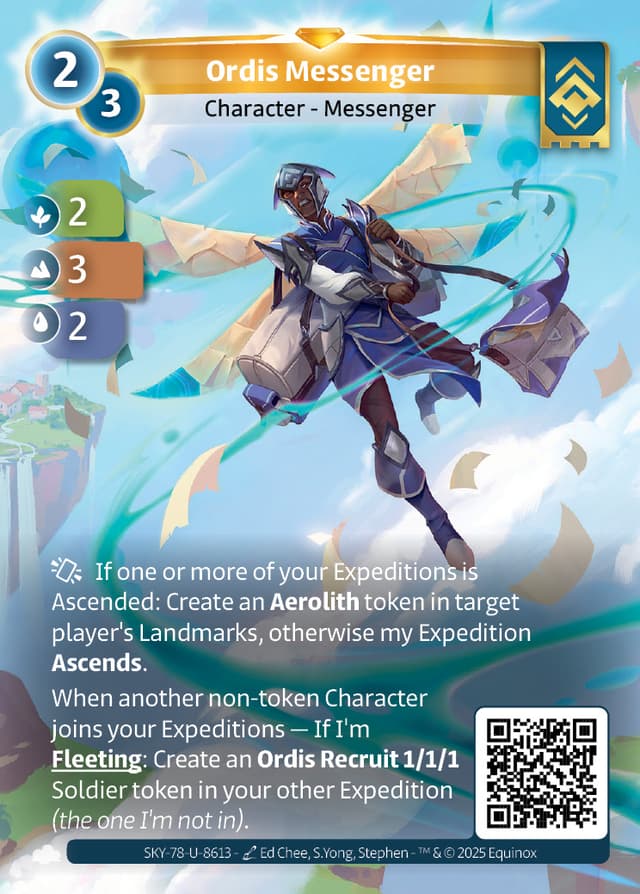 When another non-token Character joins your Expeditions — If I'm Fleeting: Create an Ordis Recruit 1/1/1 Soldier token in your other Expedition (the one I'm not in).