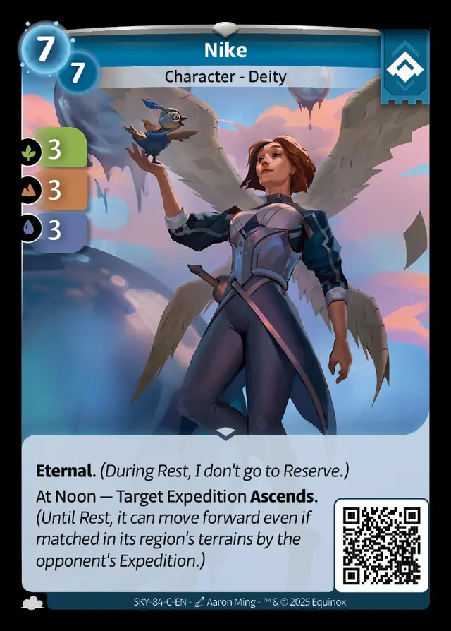 At Noon — Target Expedition Ascends.(Until Rest, it can move forward even if matched in its region's terrains by the opponent's Expedition.)