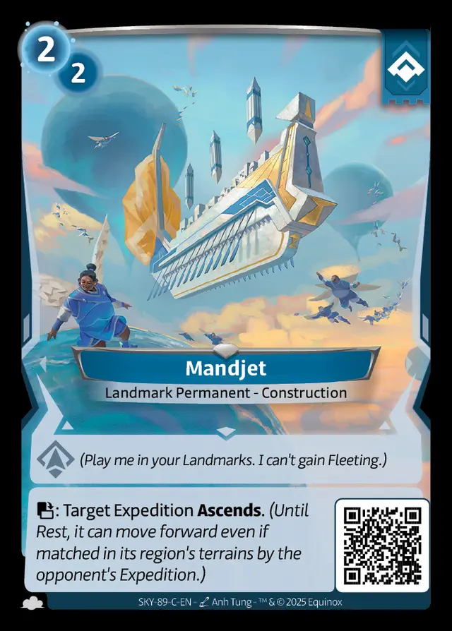 : Target Expedition Ascends.(Until Rest, it can move forward even if matched in its region's terrains by the opponent's Expedition.)