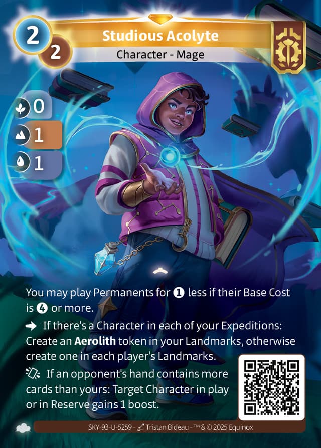 If there's a Character in each of your Expeditions: Create an Aerolith token in your Landmarks, otherwise create one in each player's Landmarks.
