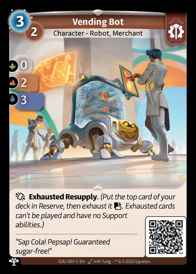 Exhausted Resupply.(Put the top card of your deck in Reserve, then exhaust it . Exhausted cards can't be played and have no Support abilities.)