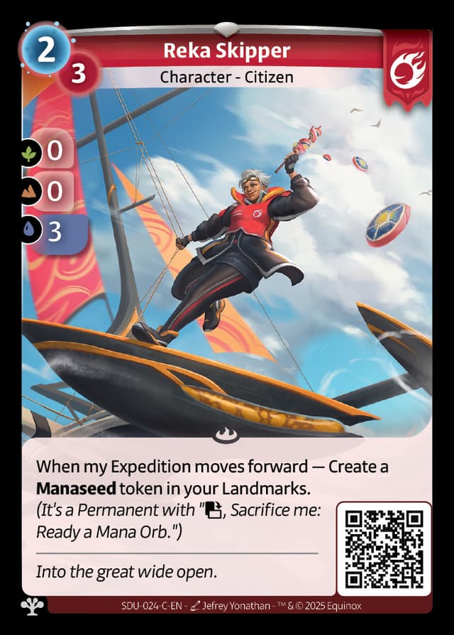 When my Expedition moves forward — Create a Manaseed token in your Landmarks.(It's a Permanent with ", Sacrifice me: Ready a Mana Orb.")