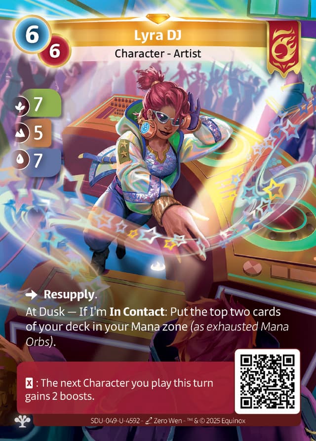 At Dusk — If I'm In Contact: Put the top two cards of your deck in your Mana zone (as exhausted Mana Orbs).