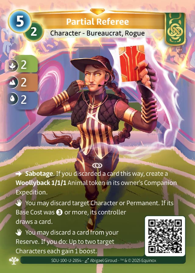 Sabotage. If you discarded a card this way, create a Woollyback 1/1/1 Animal token in its owner's Companion Expedition.